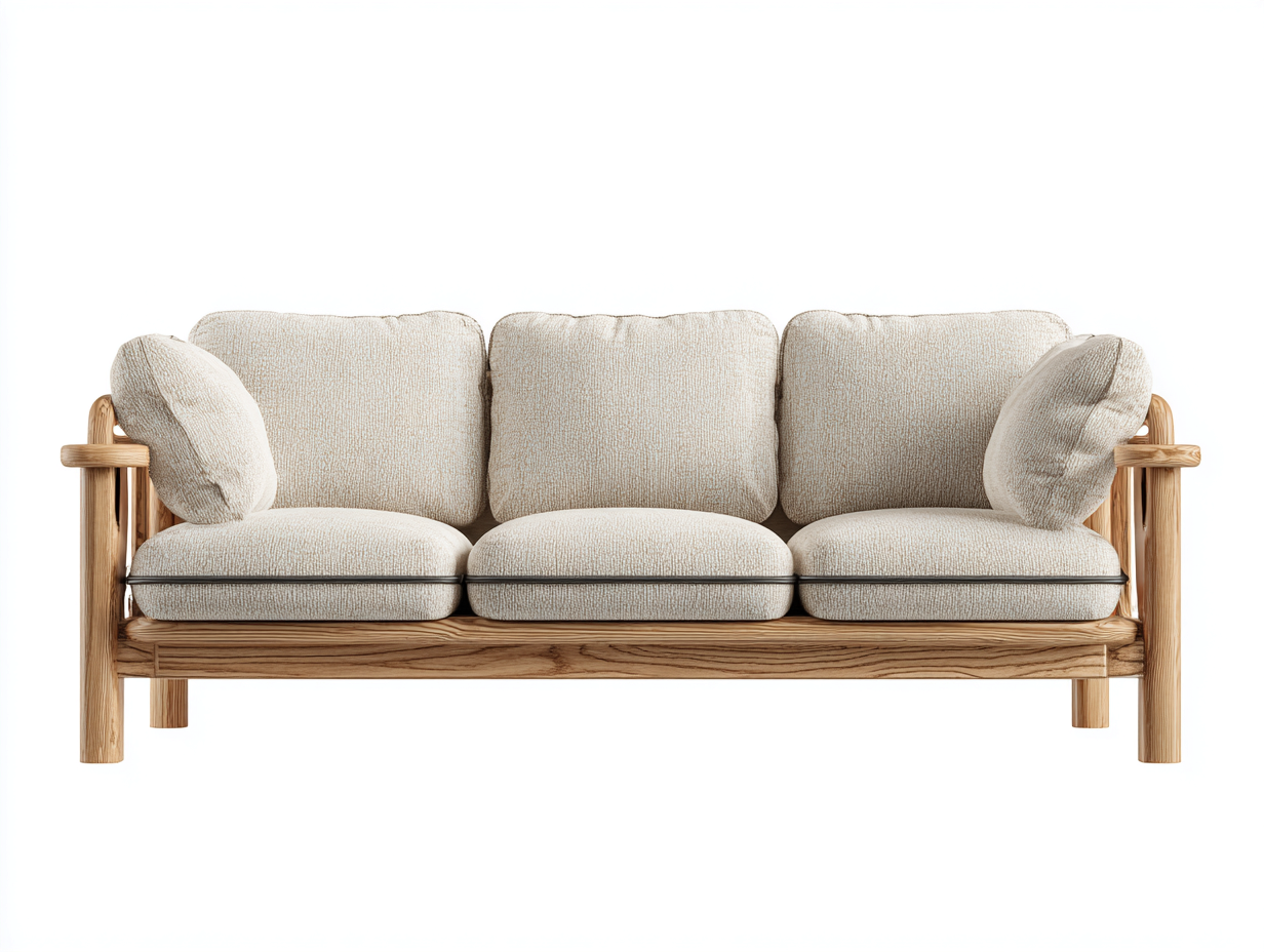 Dieses 3-Sitzer-Sofa ist für das Wohnzimmer konzipiert und überzeugt durch seine schlichte Formgebung im natürlichen Stil. Die Kombination aus weicher Polsterung und klarer Linienführung sorgt für ein ausgewogenes Erscheinungsbild und angenehmen Sitzkomfort im Alltag.